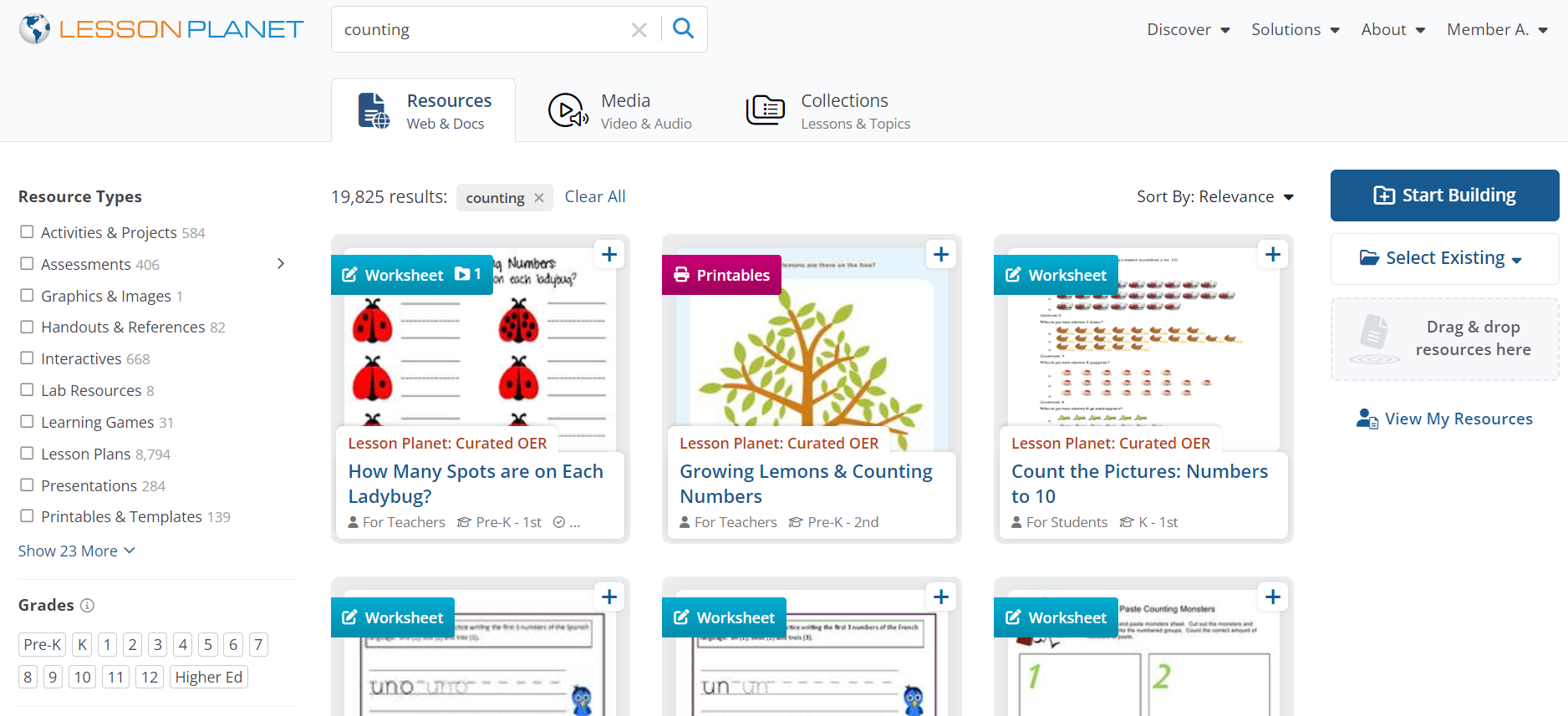 Our search has been designed for members to easily toggle from one category to the next to help you search for the specific resources you need-making it easier to build out your lessons and to save you more time on planning out your curriculum for your students.