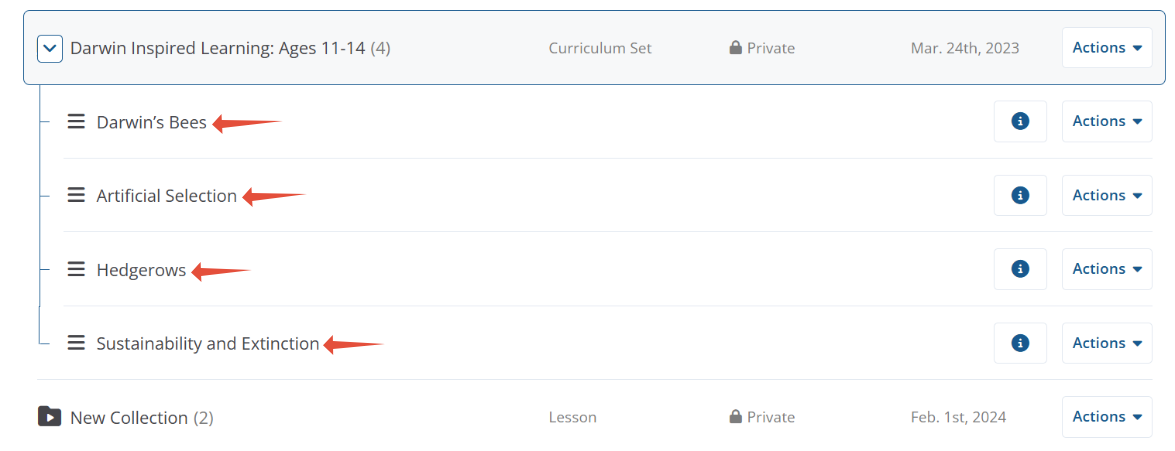 - When you are on the Collections tab, you will see a number of collections made up of multiple resources and are labled as Curriculum Set, Assesment Set, Lesson, Unit or Topic.