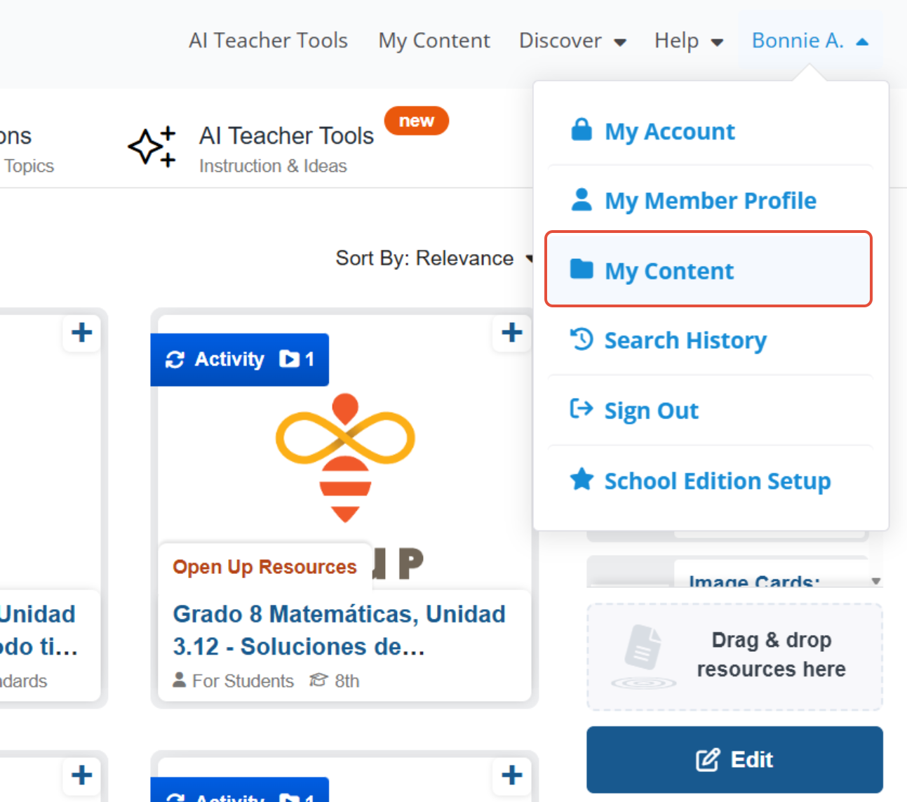 - Hover over your Discover in the navigation bar and click on Curriculum Manager(My Content).